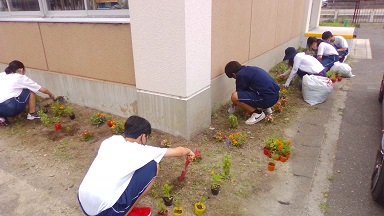 先月の反省、今月の目標、今月の活動内容・取り組みの話し合いの後、花の植え替えや掲示物の張替えなど、ぞれぞれ委員会独自の取り組みを行いました。