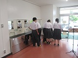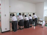 1年生全生徒及び2・3年生の一部生徒の眼科検診を行いました。検診前と検診後には、手洗いをしっかり行いました。