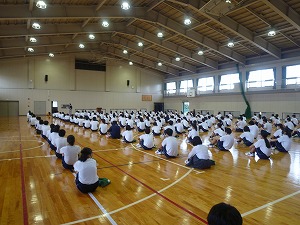 放送での始業式後、1年生は各学級での取り組み、2・3年生は学年集会を行いました。久しぶりに顔を見た仲間もいたことでしょう。