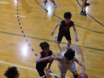 大池中学校男子バスケットボール部は本日4月18日(土)に南中学校体育館を会場として、1回戦の対「朝日・三滝中学校との合同チーム」との試合に頑張りました。この春に卒業した先輩たちと一緒に頑張った夏の三泗地区予選は第3位という輝かしい成績を残してくれました。その先輩たちとの成績に少しでも近づけることができるように、日々の練習に取り組んできた3年生と2年生の部員です。