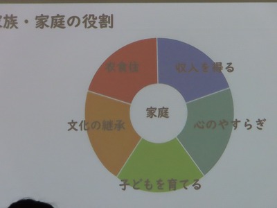 そこには、それぞれの家庭で大切にしている「文化の継承」や「食事」「こころのやすらぎ」など・・・自分自身の家庭・家族を振り返りながら授業をすすめていきました。