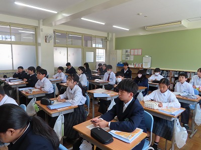 「自立と共生」。家族・家庭における基本的な役割について、自立・自律・共生という3つの大切な視点から、考えを深めました。授業の取り組みから、1年2組の子どもたちは、『今の自分ができる家庭での家族での役割について考える』ところまで深めることができました。