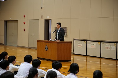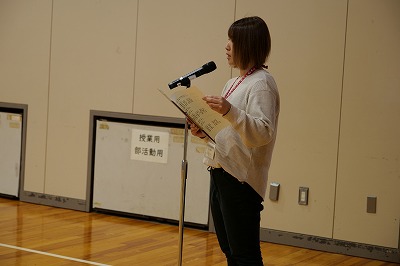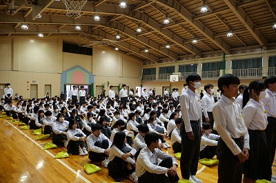 本日4月13日(月)6限目の「学活の時間」を利用して、全校にて室長・専門委員会等の「認証式」が体育館にて行われました。先週までの「対面式・部活動紹介」に続き、体育館で全校が一斉に集い、全校集会形式で行われました。今年度の学校づくりビジョンの学校経営の重点となる4つの柱の1つである『生徒会活動を中心とした子どもたちが主体となる自治活動』。全校集会のメリットは、中学校に入学したばかりの1年生のみなさんが、全校で活動するときの動きの確認をする「見本」となる指針が3年生、2年生の先輩であること。先生たちが教え、伝えるのではなく、先輩が行動と姿勢で後輩を引っ張ることができることです。始業式、入学式、対面式、そして「認証式」。やっぱり、大池中学校は「先輩の姿から学べる学校です」。「認証式」という場で認証されるのは、室長、専門委員会などに「強い思いと意思を持って立候補した」人ばかりです。そして、自分の大切な名前を代表として呼名された大切な時間。真剣に、大きな声で返事をしてくれたのは3年生の先輩たち。3年生の全員が大きな声で返事をしてくれる認証式のステキな流れを、後輩となる2年生、1年生もしっかりとつないでくれました!