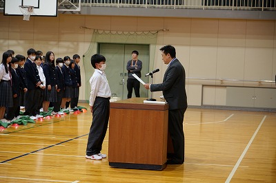 クラスの代表として、全校の代表として立派に認証状を受け取りました。みんな力強く前を向いて。これからが本格的な活動のスタートです。強い意志と思いを継続させ、新しい大池中学校の学校づくりを先生たち一緒にすすめましょう!期待しています!校長が出張で不在のため、教頭先生に認証状を渡していただきました。教頭先生からは、「名前を呼名された3年生が大きな声で返事をしてくれたこと、堂々と認証状を受け取る姿が本当に素晴らしかったです。後輩にもその姿がしっかりとつながっていました。」と今日の様子を教えていただきました!子どもたち1人1人が「責任と自覚」を持って取り組んでくれた認証式。認証された皆さんの思いを大切に、みんなで新たな学校づくりをどんどん進めていきましょう!今日の認証式のみなさんの姿はを明日に、これからにしっかりとつなげましょう!期待しています!