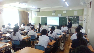 今回、ヒューリアみえの荻田実樹さんにお願いし、各クラスごとに講演をいただきました。偏った情報をうのみにしてはいけないというお話から、こんな場合はどうしたらいいのかなどを具体的な場面を例に教えていただき、子供たちも考えていました。