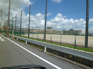 遠くからしか写せませんでした。分かりにくいでしょうね。ヒントは、近鉄名古屋線の沿線(えんせん)にある高等学校です。市内でエキチカです。