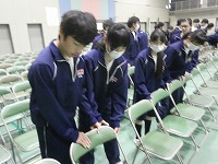 いよいよ卒業式前日となりました。2年生が中心となっての「会場づくり」、1年生は、「校舎内外の清掃」をしてくれました。