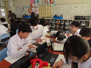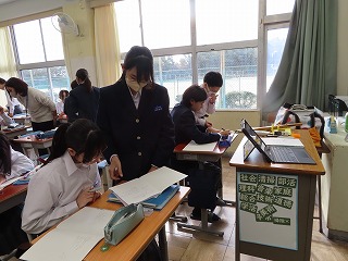 3学期に入り、やっとじっくり授業の様子を確認できる時間をつくれるようになってきました。昨日1月14日(水)は1年2組において、子どもたちが仲間とともに頑張っている姿を3限目の国語授業の様子を見させてもらいました。そして、4限目の数学授業の様子も継続して頑張っている様子を見させてもらいました。