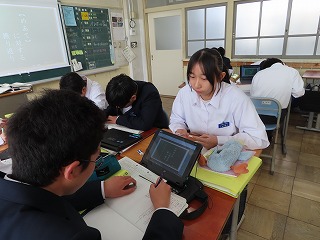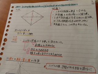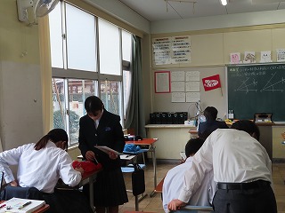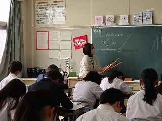 また、4限目の1年2組は数学授業に取り組みました。1年生の数学授業も『学び合いのある授業づくり』を柱として、「深い学び・多様な考え方を育成する援護活動」を大切にする授業づくりを目指しています。