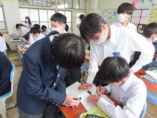 子どもたちは、初めて学ぶ「漢文が難しい!」だけで終わるのではなく、「漢文は難しいから、仲間と一緒に話し合ったり、教え合ったりすることで、わかるようになってきた!わかると楽しくなってきた!」そんな授業になっていけると感じ取ることができる授業を見させてもらいました。1年2組子どもたちは、みんなで全員が国語授業の「漢文」にあたたかい雰囲気の中で、自分の意見や考えを出し合い、聴き合いながら一生懸命に取り組んでいました。