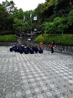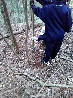 まず、自然の家の職員さんから保全活動についてお話があり、その後、施設周辺の山に入り、班別で活動です。