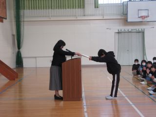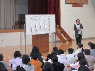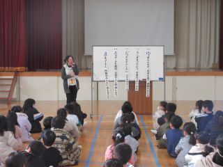 冬休みの生活について、生指担当より、「ゆきだるま」をキーワードとして話がありました。一つひとつの文字について、どんなことに気を付けるのかを子ども達も想像しながら聞いていました。「ま」では、「毎日、勉強する!」というつぶやきも聞こえてきて、冬休みの学習への意気込みが感じられました。