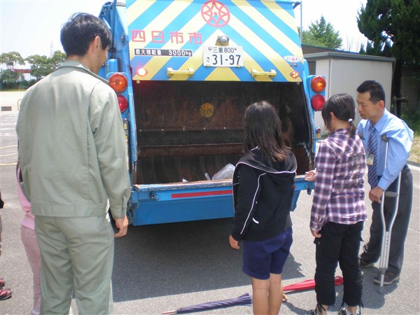 パッカー車に実際にゴミを入れる作業をさせていただきました。