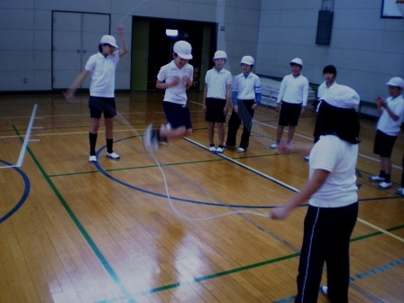 毎週木曜日の5限目の体育の時間には、短なわや長なわを使っていろいろな跳び方にチャレンジしています。