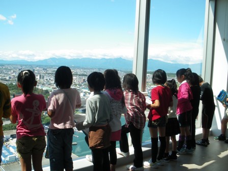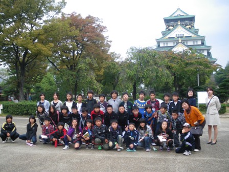 13日7時、たくさんの方のお見送りを受けて元気に出発しました。 1001体の先手観音像から自分に似た顔を探した「三十三間堂」が最初の見学地です。 次は「清水の舞台」から景色を眺め、「音羽の滝」で全員お水を飲みました(一番多かったのは長生きの水でした)。買い物をすませ、お昼ご飯を食べた後は二条城。廊下を歩くたびにキュッキュッとなるうぐいす張りを歩き、その仕組みもわかりました。1日目最後は神々しい金の輝き「金閣寺」。感嘆の声を上げながら見学を終え、トロッコ電車へ。ホテルでバイキングをいっぱいいただき、落語で大笑いして10時に就寝。 2日目の最初の見学地は「大阪城」。8階の天守閣まで階段で上がったのは息が切れてえらかったのですが、天守閣からの眺めと風はとても気持ちがよかったです。各階を見ながら下りてからは「ピースおおさか」に行きました。ここでは満州事変から第2次世界大戦終結の実相など戦争の恐ろしさ・悲惨さを改めて感じさせられました。最後の見学地は、普段よく目にしている10円硬貨の平等院鳳凰堂です。平安時代の貴族が建立した寺院が残っているというすごい史跡です。雨が降っていて少し残念でした。 帰りのバス中もバスレクで大いに盛り上がり、お家の人が待ってくださっている水沢に予定通り戻ってきました。 子どもたちは二日間、よく勉強し、協力し、そして大いに楽しんで、またまた成長できた修学旅行でした。