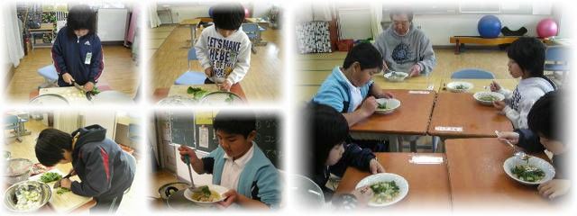 畑でとれたミニ大根と小カブを使って、スープを作りました。ミニ大根や小カブの皮をむいているうちに、実がどんどんやせ細っていき、気がつくと「食べるところはどこ?」というハプニングもありましたが、慣れた包丁さばきで調理していきました。 コンソメスープで味付けして完成!おかわり続出のおいしさでした。 さて、来年度も畑の野菜でいろいろ調理できるといいですね。 | |