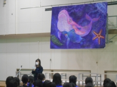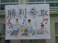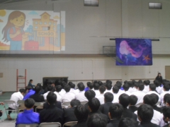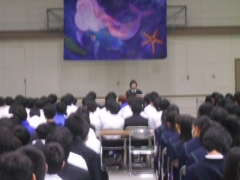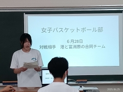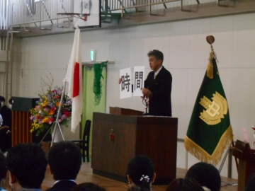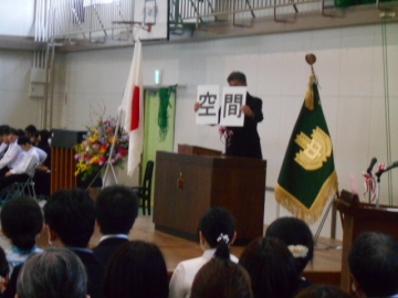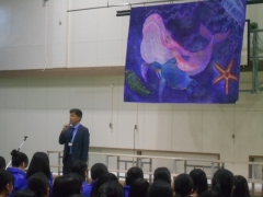 開会式では、校長先生と生徒会長のあいさつに続き、美術部作品紹介が行われました。今年の壁画ポスターのテーマは「自由」です。