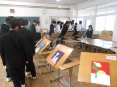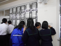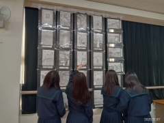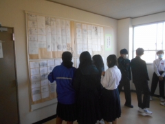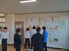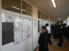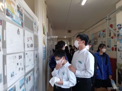 美術部、文芸部、家庭部、パソコン部の部活展示、美術科、社会科、理科、技術・家庭科、生活科の教科展示、各学年の学年作品(1年:写生大会作品、2年:職場体験個人新聞、3年:ドリームマップ)が行われました。