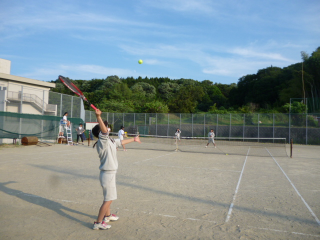練習は、活動前にウォーミングアップトレーニングと素振りを毎日行い、基礎体力をつけています。また、サーブやボレー、1本打ちなどの基本練習を中心に行っています。