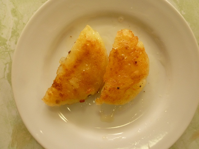 【ポテトもちの作り方】 材料(6人分) じゃがいも 6こ 片栗粉 大さじ5 さとう大さじ2 ピザ用チーズ 大さじ2 @じゃがいもの皮をむき、1cm角に切りやわらかくなるまでゆでる。ざるにあける。 Aさとう、片栗粉を加えてマッシャ―でよくつぶす。 B生地をよくこね、手のひらで平たくしてチーズを包んで丸める。 C多めの油をひいたらフライパンで揚げ焼きにする。 D皿にもりつけて、たれをかけて完成! ※みたらしたれ しょうゆ、さとう各大さじ3 水100ml 片栗粉 大さじ3 ※はちみつバターソース はちみつ 大さじ3 バター 大さじ2