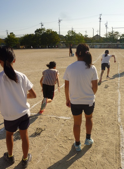 開催にあたっては、子どもたちに出場希望を募り、多数の場合は、記録をとって選抜を行います。種目は、100m走、リレー(100×4)、ソフトボール投げ、走り幅跳びです。放課後練習をしている子どもたちは、選抜をされた子どもたちですが、先生方のアドバイスを聞いて、少しでも記録をあげようと頑張っています。
