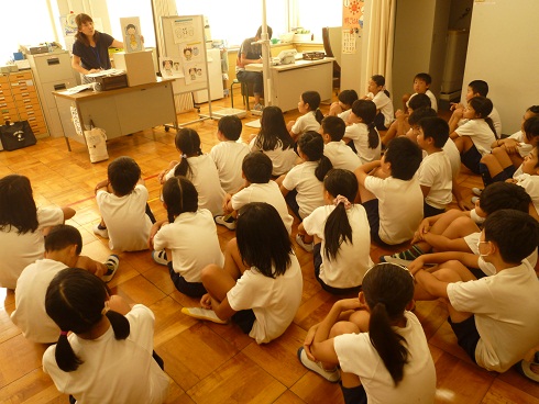 四日市市少年自然の家の施設やカヤック、ふれあい牧場の写真が映しだされると、歓声があがりました。画面がかわるたびに、大騒ぎで、その素直な反応に、びっくりしてしまいました。 自然教室では、普段味わえない豊かな自然の中で、自然に触れる楽しさを味わうことができます。また、集団生活を通して、友達同士の助け合いやつながりを深められることと思います。 充実した活動が行えるように、子どもたちとともに、しっかりと準備を進めてまいります。