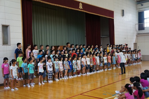 始業式は、校歌を歌い、私の話だけでしたが、体育館に入ってくる様子もお話を聞く態度もたいへん立派でした。これまたうれしくなりました。 始業式では、子どもたちに、「かしこい子」になってくださいと話をしました。勉強では、目標を立てて自分から進んで学習してほしいということ、でも、テストで良い点をとることだけが「かしこい」ことではなく、あいさつをきちんとすることやお友達にやさしくして、「ありがとう」といっぱい言ってもらえる子が「かしこい子」なのだと伝えました。