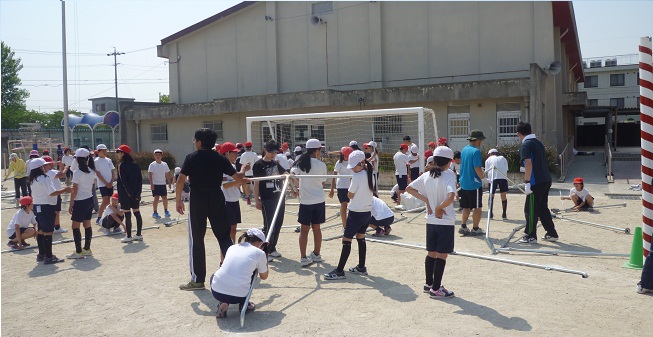 今日の午後は、明日の運動会の準備でした。6年生が、たいへんな暑さの中を先生たちといっしょに、テントの設営、くい打ち、入退場門設営、椅子出し、ライン引きなど、準備を進めてくれました。 写真は、テント設営の様子です。 途中でお茶タイムをとりながら、思っていたよりも短時間で準備を終えることができました。お疲れ様でした!6年生のみなさん、ありがとうございました。