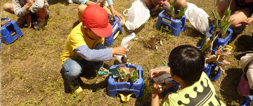 2年生の子どもたちの1年生のときに植えたチューリップが、始業式、入学式からずっと美しい花を咲かせて、私たちを楽しませてくれていました。 しかし、それもすっかり花弁が落ち、葉も枯れてきました。 来年も、この球根で咲かせたいとなると、種ができないように花が咲いたあとその部分を切り取っておくとよいのでしょうが、種ができるのを観察するのも学びの一つとして、そのままにしてありました。 今日、久しぶりに植えた球根との再会です。 来年も花をつけそうな球根もありました。涼しくて、暗いところで保管し、秋にまた植え来年も花が咲くとうれしいですね。たいへんな時間が必要ですが、種から育てて球根を育ててみるのも楽しいかも知れません。お家に持ち帰りますので、挑戦してみてください。