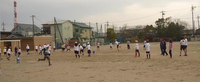 運動場では、いつも、サッカーとドッジボールクラブが校庭を分け合って行っているのですが、今日は、運動場に多くの水たまりがあり、全面を使うことができませんでした。 そこで、サッカークラブ対ドッジボールクラブのドッジボールの試合を行いました。 サッカークラブの子どもたちにとっては、最後にサッカーができなかったのは、残念でしたが、ドッチボールクラブを相手に白熱した試合を展開していました。 |