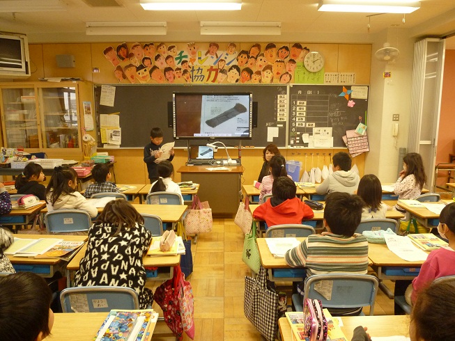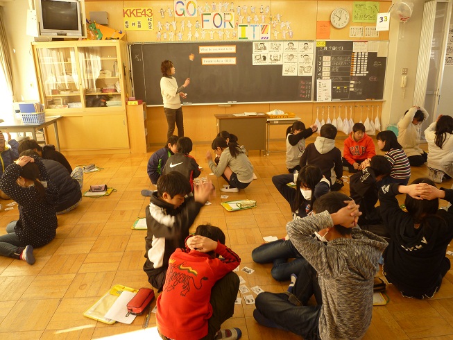 今日は、6年生の「外国語活動」を参観しました。 外国語指導助手の先生はいない、担任だけによる授業です。