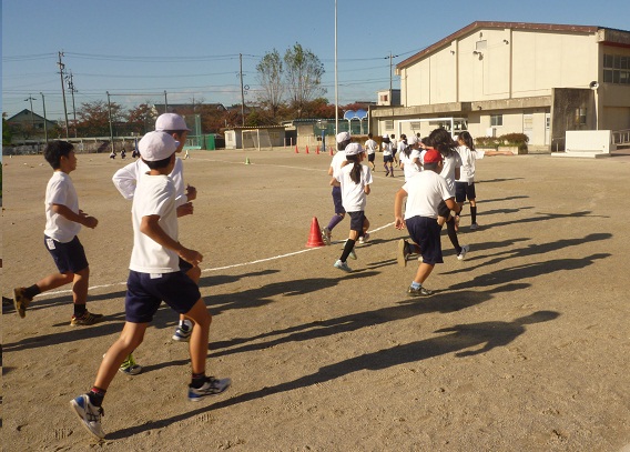 先月の27日から、11月28日までの5週間、全校で、かけ足運動に取り組んでいます。