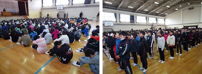 1月8日の始業式に続いて 3学期の避難訓練の事前指導を行いました。 校内の放送機器が使えない場合を想定して行い そんなときは、どうして行動すればいいのかお話がありました。 放送機器が使えない場合は、メガホンでよびかけます。 そして、『もし休み時間に緊急避難速報が流れた場合にはどうするか』、 など、場面を設定して、 自分がどう行動すればいいかを考えました。 起こってほしくはないですが「もしも」が起こった時に こういうことを先生は言っていたな、 じゃあ、自分の身を自分で守るために 「ここは危険だな」「こっちは安全だな」と瞬時に判断し 「安全な場所へ逃げよう」と思い出せるといいなと思います。 |