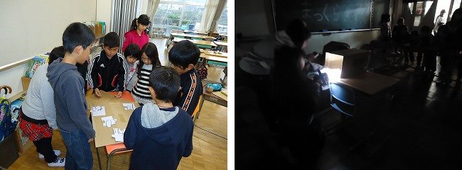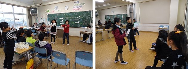 12月11日(木)のチャレンジウォークラリーでは 5Bも出し物を考えました。 たくさんのカードに書かれているものを動作で表現し そのジェスチャーを当てる「ジェスチャーゲーム」。 なわとびや赤ちゃん、お化け・・・など 子どもたちのジェスチャーがとても上手でわかりやすく、 また、係の二人の息がぴったり合っているので驚きました。 当てる人たちも次々に「○○!」と声が上がり盛り上げっていました。