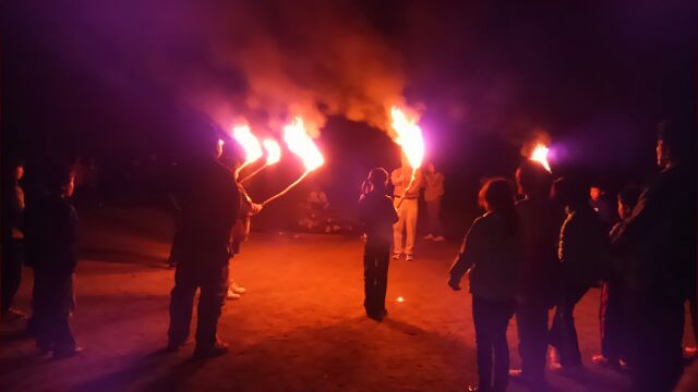 キャンプファイヤーが誓いの言葉とともに、始まりました。楽しいダンスで盛り上がりました。