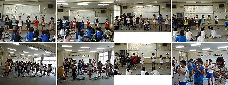 「1パートの音が聞こえたほうが合わせやすいから、近くに来てほしいな」 「このテンポだと合わせるのが大変そうだから、もう少しゆっくり演奏しようよ」 「みんなが合わせるために、かけ声を言う人に中央に来てもらってもいいかな」など、 より良い演奏にするために、子どもたちからの声がたくさんあがり、 発表しているとき、発表を聴いているときの子どもたちの表情はとても輝いていました。 この経験を活かして、これからも互いのことを考えあい すてきな言葉をしていってほしいと思います。 グループの発表のあとは、全員で合奏し クラスが一つになりました。 |