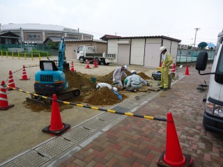 9月14日は、運動会を前にスプリンクラーの元栓の工事をしてもらいました。