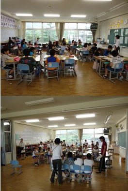 6月6日は、初夏らしい青空となり、金星の日面通過を見ることができました。たくさんの子どもたちが持ってきた日食グラスで観察していました。より多くの子どもたちが観察できるよう理科室の遮光板の貸し出しも行いました。思ったより小さな金星の陰を見つけることができたのでしょうか |