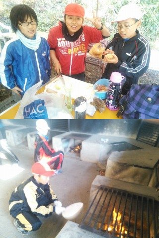 いただきます。朝食はパン食でした。おいしかったです。しっかり食べ、飯ごう炊さんに備えました。