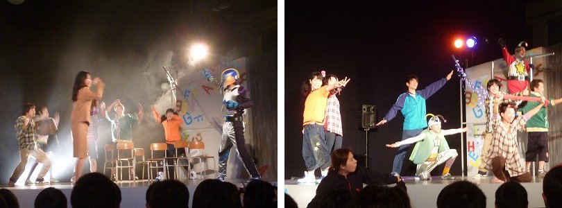 5月25日金曜日、10:30〜12:10まで劇団うりんこの劇を観ました。午前の部は1.2.5年で観ました。気が弱くてなき虫な主人公が、ある出来事をきっかけに自分のできることを考え、勇気をだして友達をつないでいく話です。笑いありドキドキあり、劇団の方々の熱演にみな引きこまれていました。感想に「9人であんなすごい劇ができるとはすごい。」、「勇気がでる話だった。」、「変身ベルトもしんいちもすごい。」、「友達のためにいろいろなことをしていたのがすごくよかった。」「1年に2回くらいこんな劇がみたい。」とありました。お子さんの感想はご家庭でお聞きください。 |