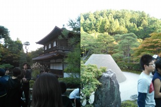 1日目最後の見学地は銀閣寺です。西日を背にしっとりとたたずむ銀閣寺。苔むしたお庭、向月台などの石庭。気持ちが落ち着くお寺でした。