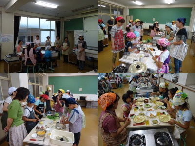 7月21日は、「バランスのよい朝食」親子料理教室がありました。 本校では、昨年度から四日市市教育委員会の「子どもの生活リズム向上事業」を受託し、「早ね・早おき・朝ごはん」に「家庭学習・お手伝い・あいさつ」を加え、よりよい生活リズムの定着への取り組みを進めてきています。 この日は、地域のボランティアサークル「あじさい広場」のみなさんに一日の元気の源となる朝食を親子で、また、子ども自身でも作って楽しく食べられる簡単な「バランスのよい朝食」の作り方を教えていただきました。 長い夏休み、料理教室の成果を試す日がたくさんありますように。 この日のレシピは、リーフレットにまとめ、保護者のみなさんに配付いたします。