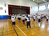 2日(木)5年生は自然教室に向けて、「ドラえもん」の曲に合わせてダンスに取り組んでいました。