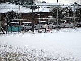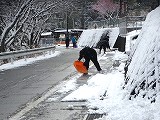 学校では、子どもたちが転倒したり滑ったりしないように、職員総出で雪かきをしました。特に、竹谷川の橋の上は雪が固まっており、危険を感じました。
