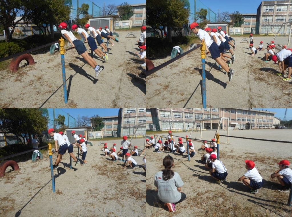 「跳び上がり」「跳び下り」「ツバメ」「前回り下り」など、様々な技に挑戦しました。