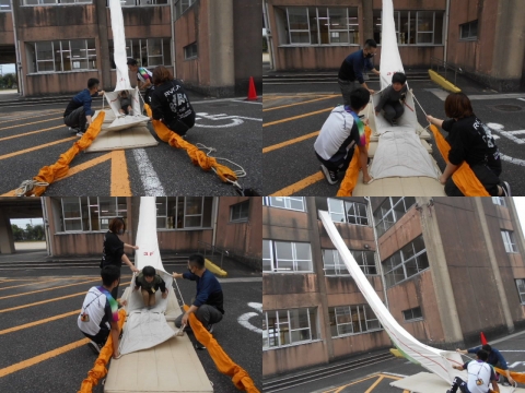 毎年,2年生と4年生で救助袋訓練を行っています。