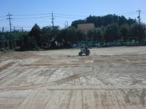 先日より行っておりましたPTAの奉仕活動にご協力いただき、誠にありがとうございました。 本日、業者の方による整備作業が行われ、運動場に新しい土が入れられ、より快適な環境へと整えられました。草のない広々とした運動場で、子どもたちはこれから運動会の練習にのびのびと取り組むことができます。