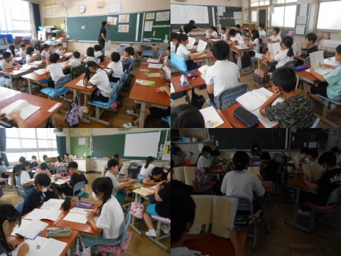毎日の宿題に,「音読」があると思いますが,「音読」⇔「読解」というように,音読をして,本文に書いてあることを授業によって,読み描き(その場面の様子を頭の中に映し出す),それを音読に表し,さらにまた深く読み取るということを繰り返していきます。