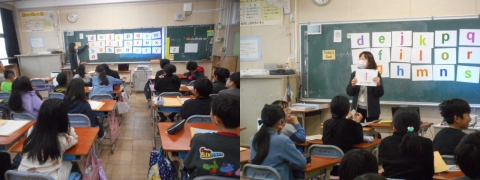 子どもたちは,楽しみながら,アルファベットに親しむ姿が見られました。