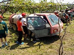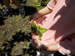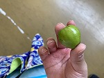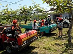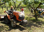 梨園さんでは、梨を作るための年間を通した仕事内容や働く人の願い・おもいをお話していただきました。また、梨園で利用する車などに体験乗車させていただきました。その後、地面に逢った摘果した梨の実をお土産にいただきました。